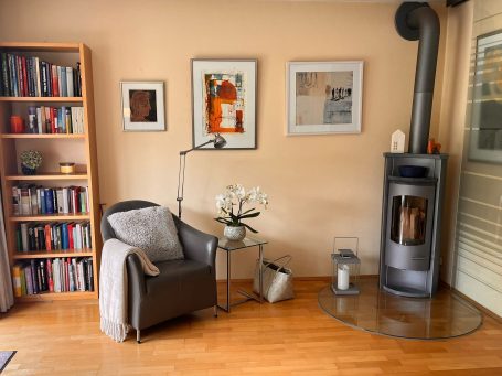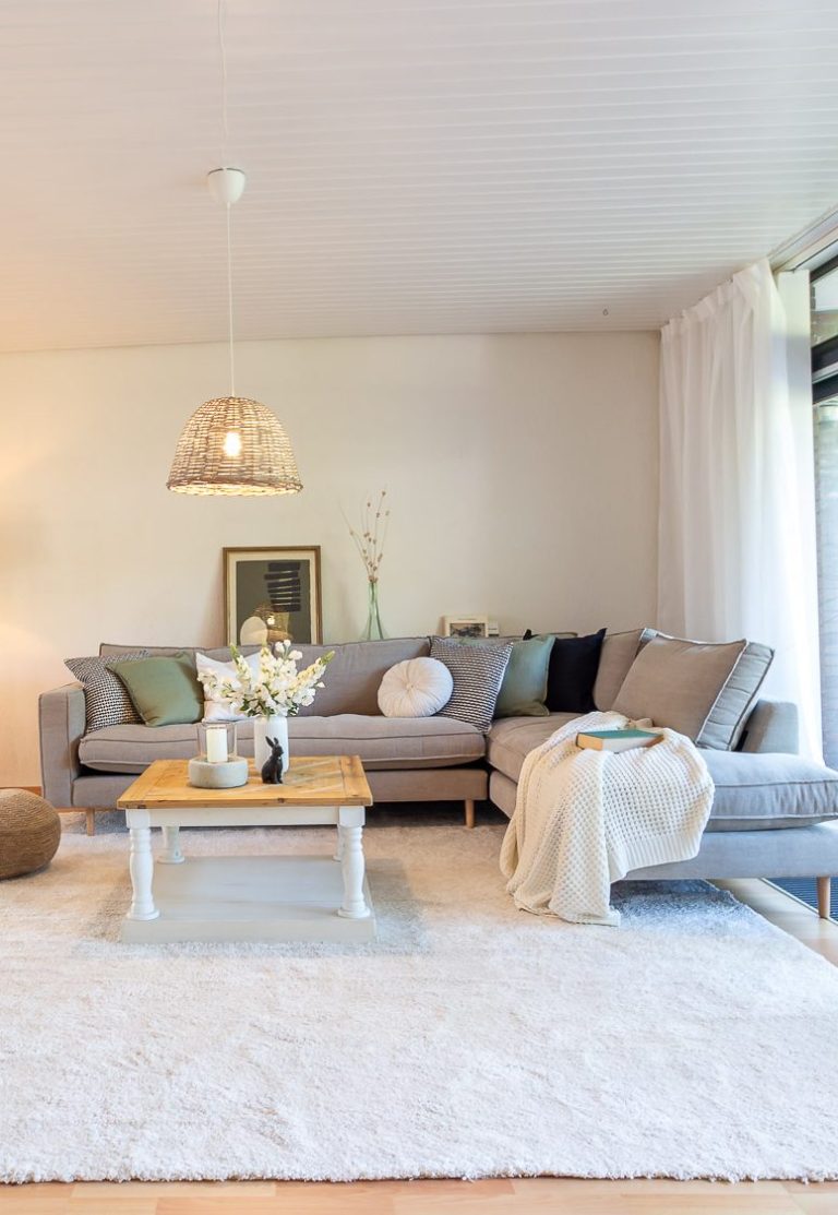 In diesem großen Haus konnte durch ein passendes Stil- und Farbkonzept eine frische Atmosphäre geschaffen werden, die sich durch alle Räume zieht. Im leeren Zustand wirkten die Räume oft klein, die Holzdecken dominierten den Raum. Mit Hilfe von hellen Farben und filigranen Möbeln erstrahlen die Räume in einem neuen Licht.